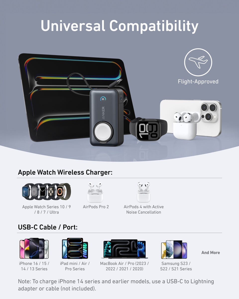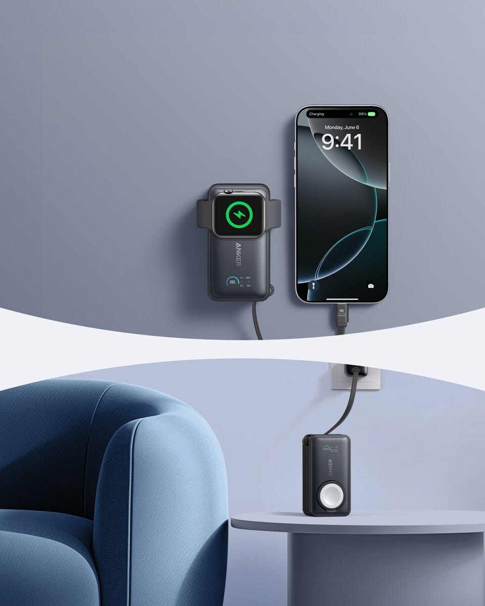 Anker MagGo Powerbank 10 000 mAh, Apple Watch og iPhone