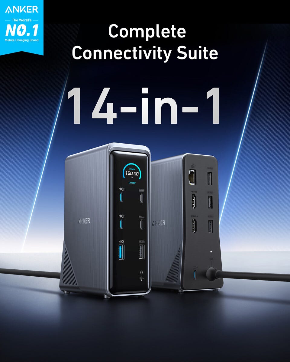 Anker Prime dokkingstasjon 14-i-1 160W Dual Display