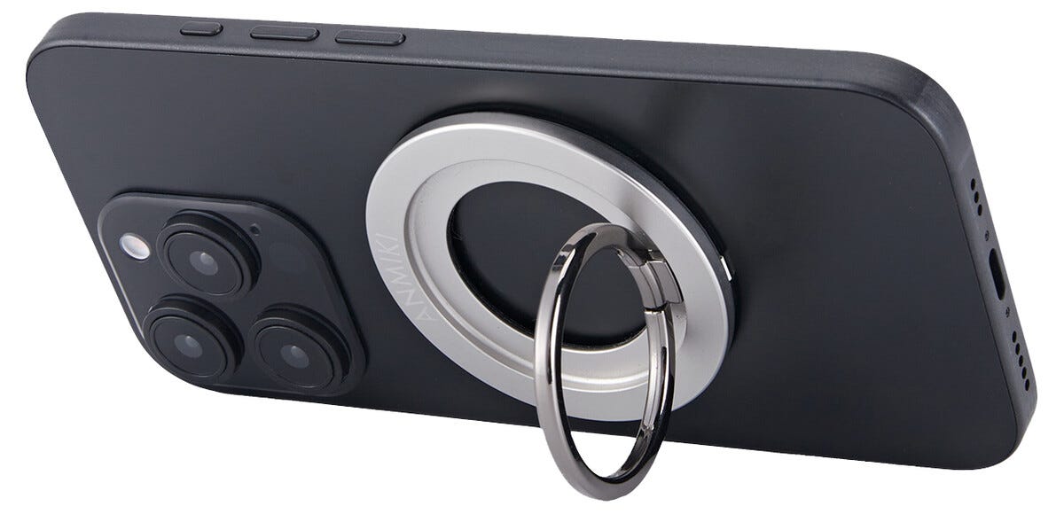 • Magnetisk ringholder – fest med MagSafe eller selvklebende 3M-teip (følger med).