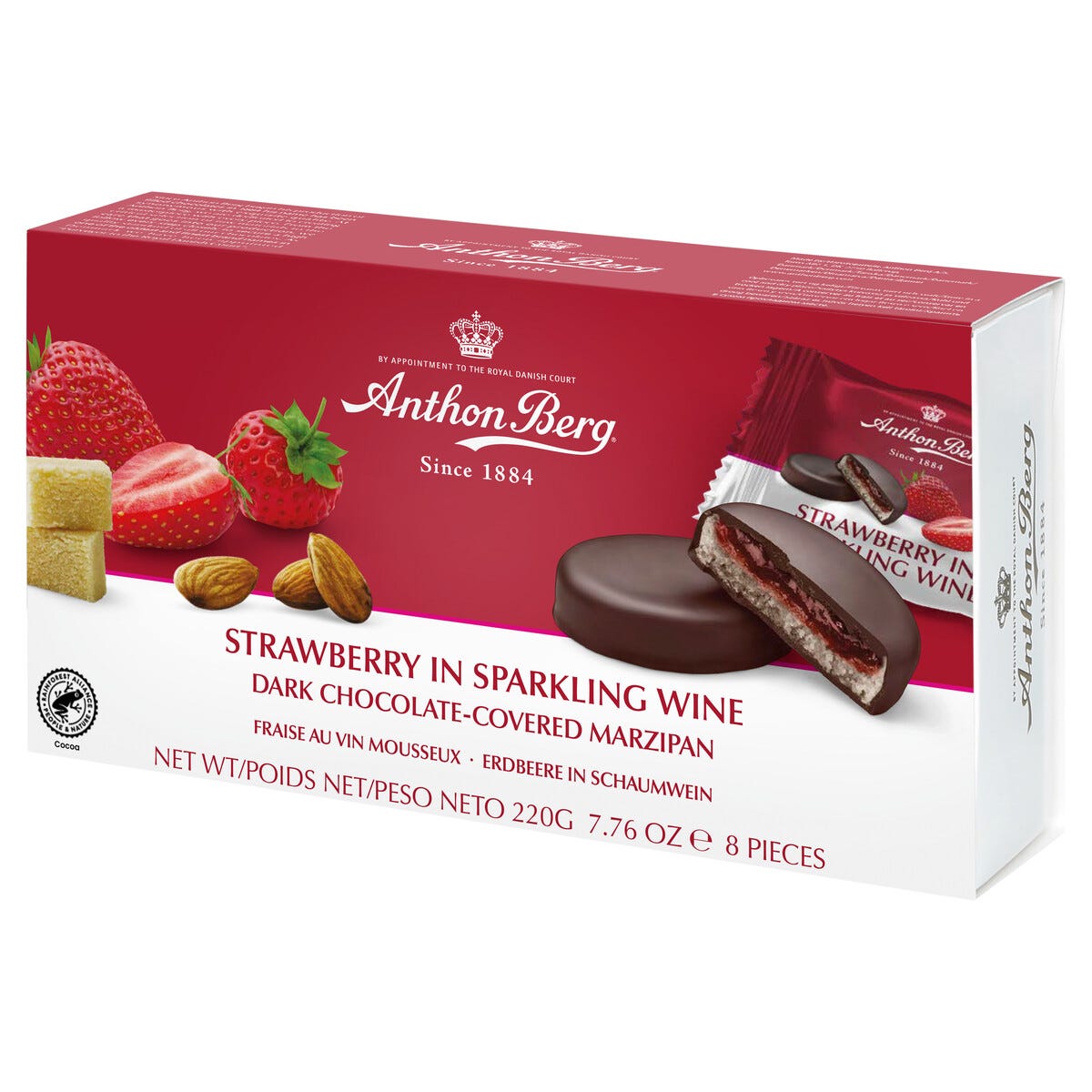 • Anthon Berg Jordbær i musserende vin – sjokolademarsipan.