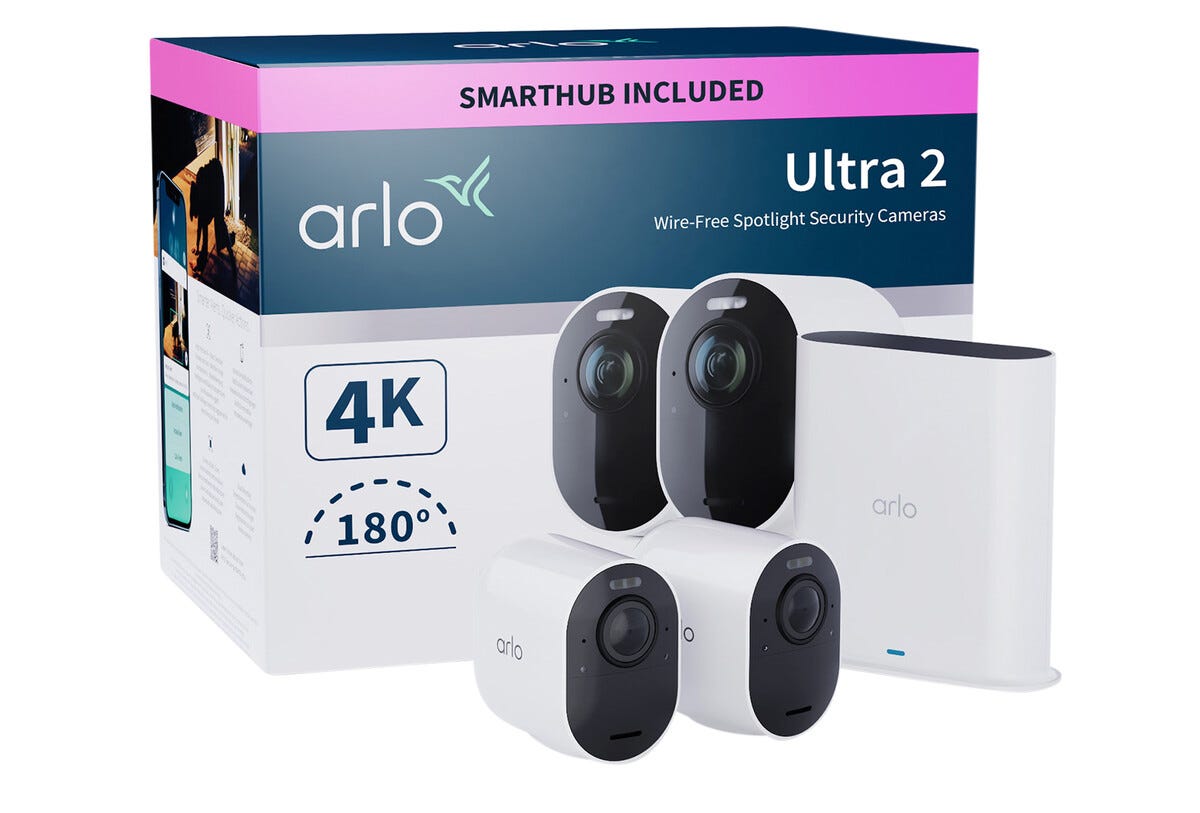 • Arlo Ultra 2 Wi-Fi, 2,4 og 5 GHz – lettplassert og batteridrevet overvåkningskamera.