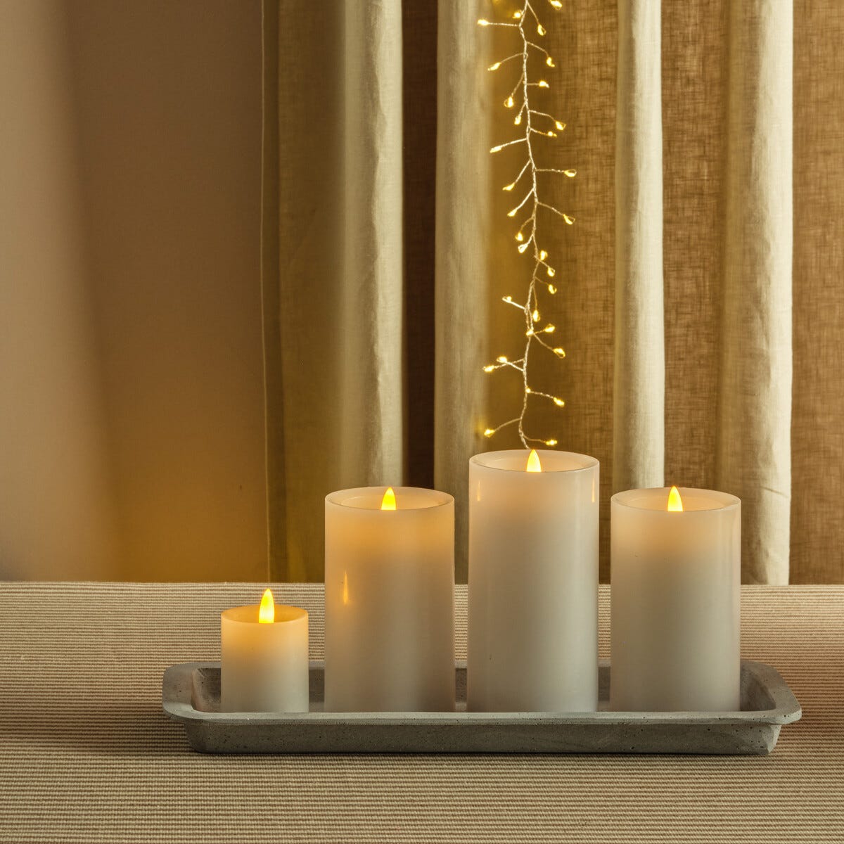 • Stilrent, rektangulært dekorasjonsbrett til kubbelys og LED-lys.