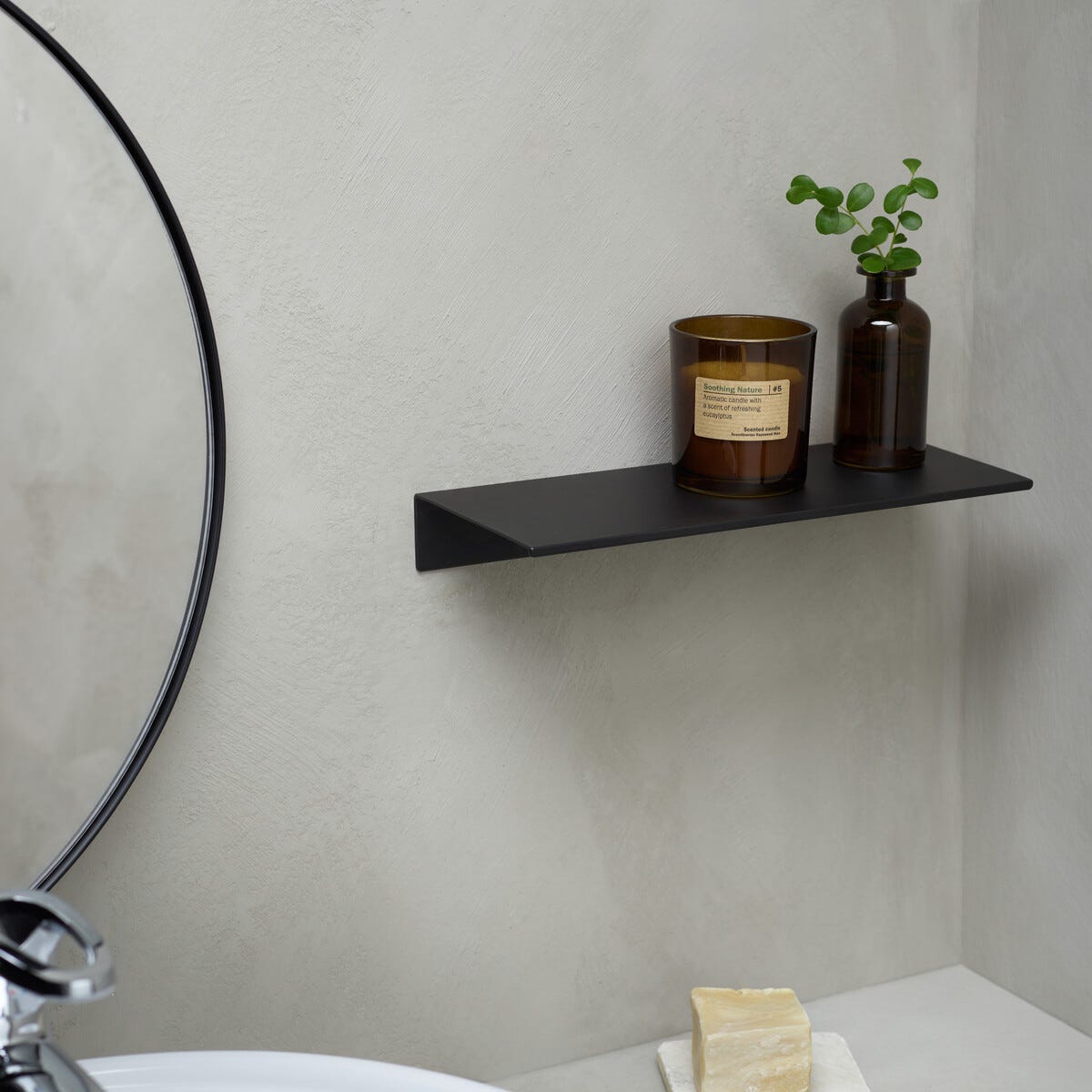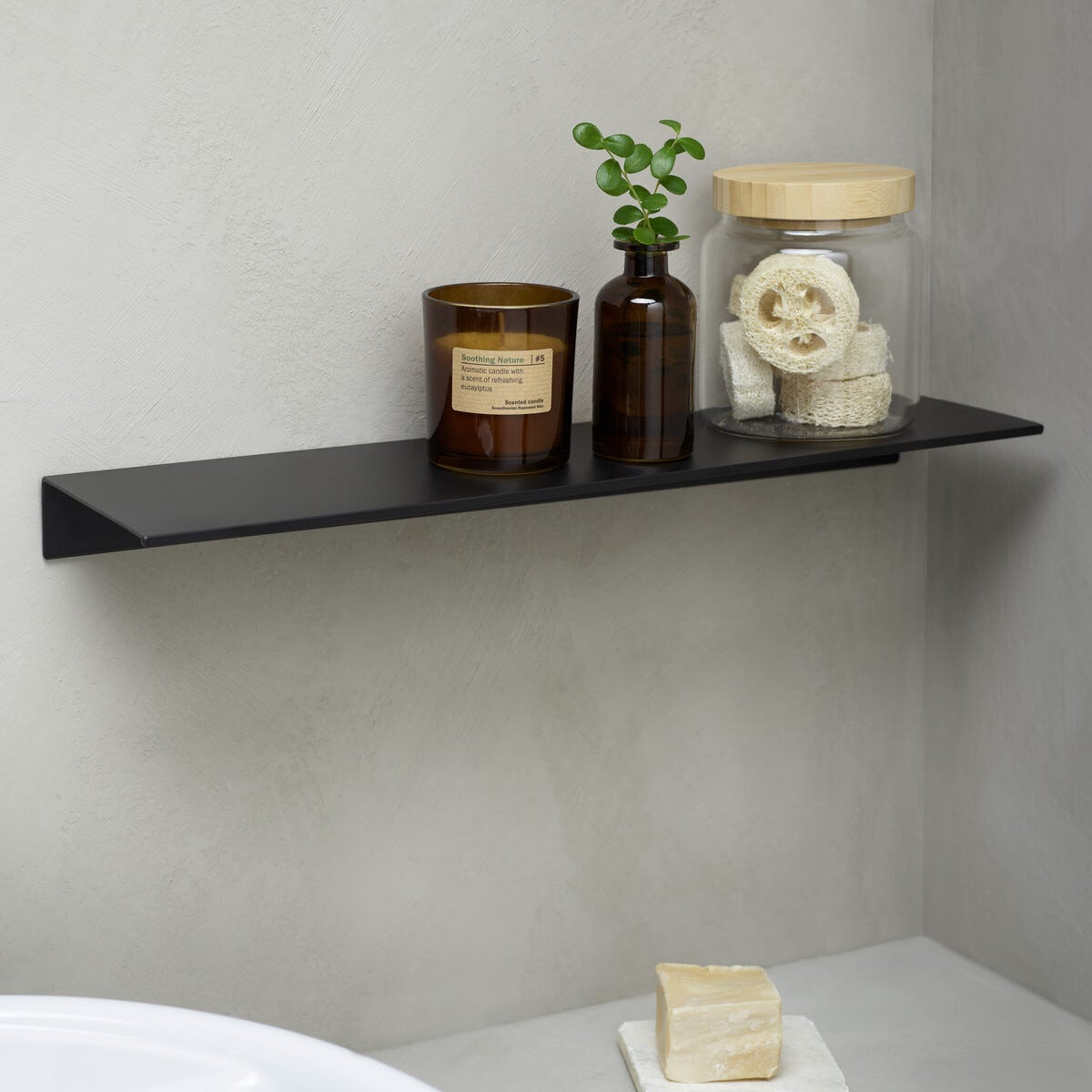 • Baderomshylle i rustfritt stål med mattsvart finish.
