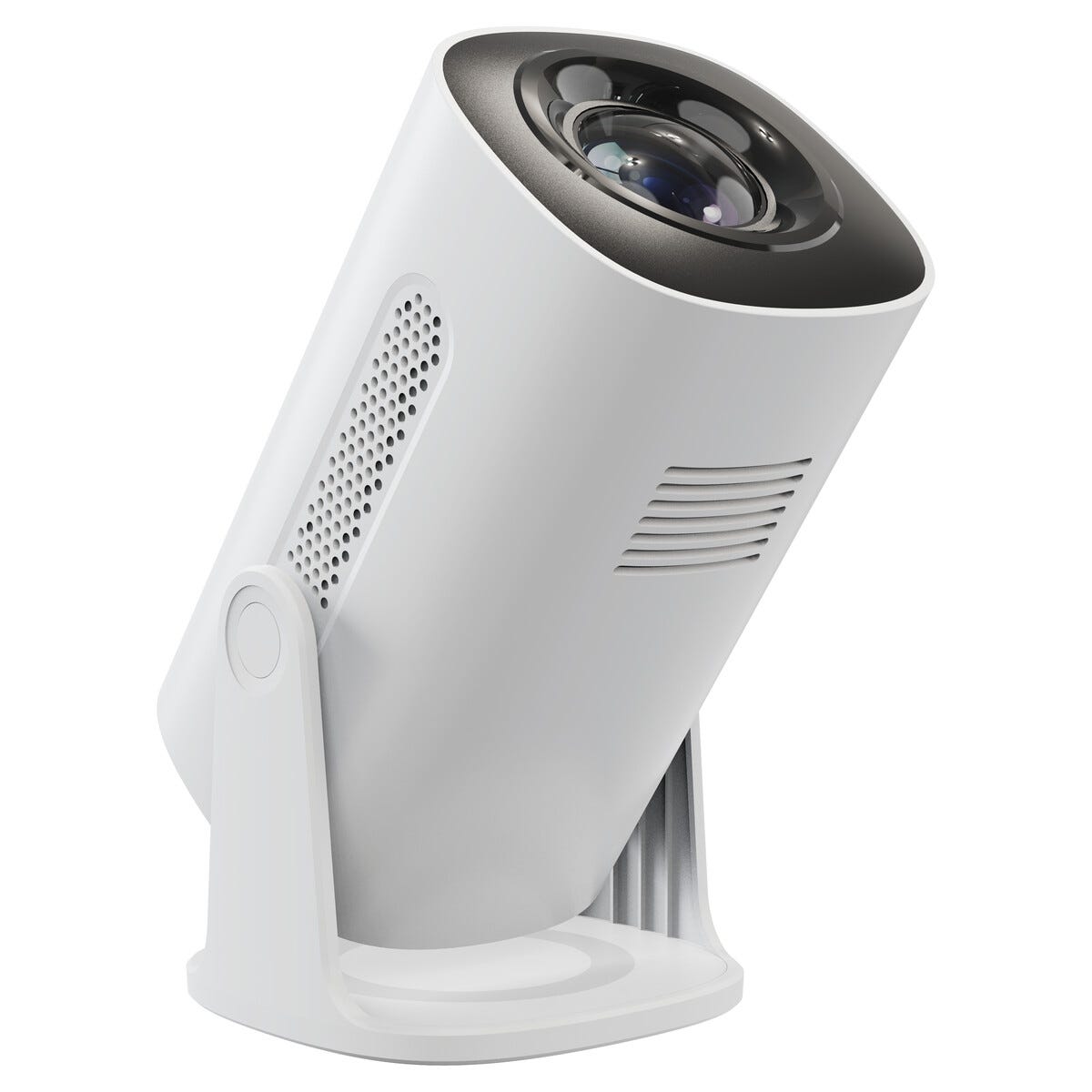 • Kompakt projektor med innebygd høyttaler og stillegående drift. Mål: 20 × 11 × 10 cm.