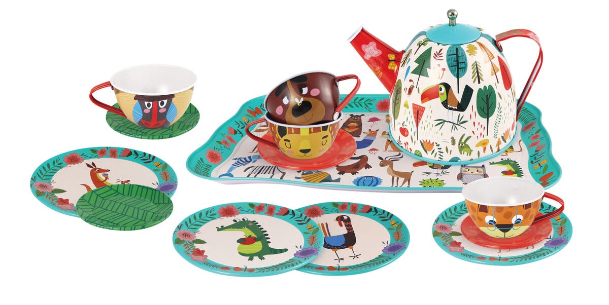 • Dukkeservise med jungeltema eller et klassisk rosemønster. Velg din favoritt!