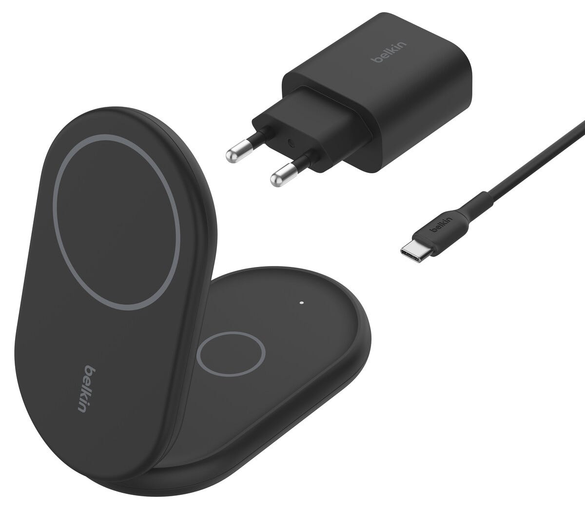 • Belkin BoostCharge 2-i-1 magnetisk ladestativ.