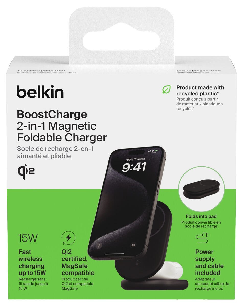 • Belkin BoostCharge 2-i-1 magnetisk ladestativ.