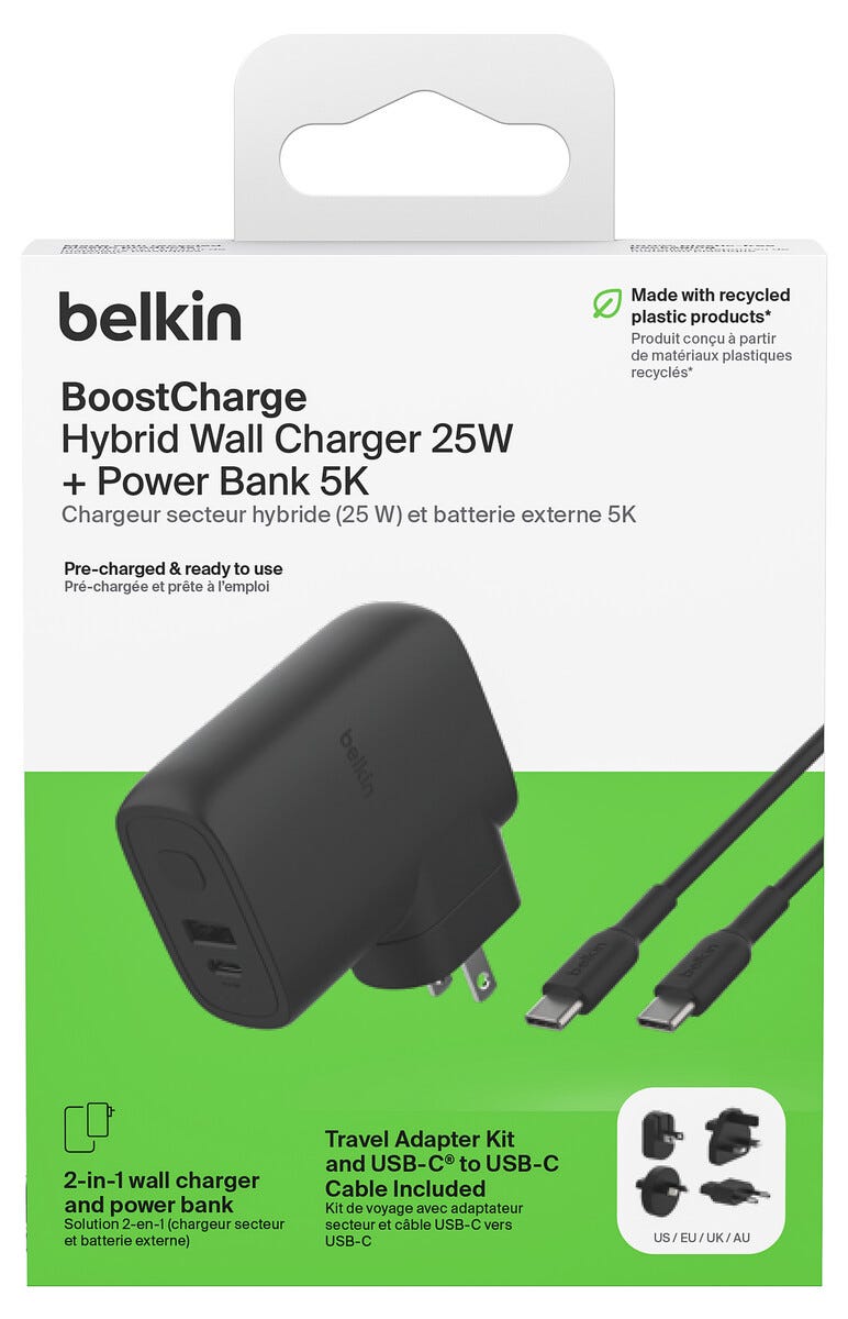 • Belkin BoostCharge hybridlader med innebygd powerbank.