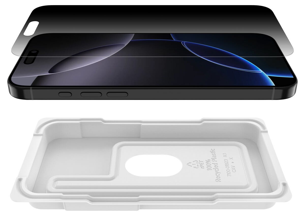 • Belkin ScreenForce InvisiGlass Privacy skjermbeskytter for iPhone 16 Pro Max.