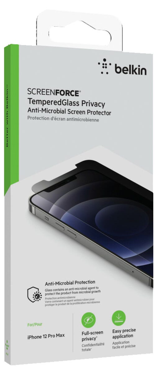 Belkin Tempered Glass Privacy Anti-Microbial, skjermbeskytter for iPhone 12 Pro Max