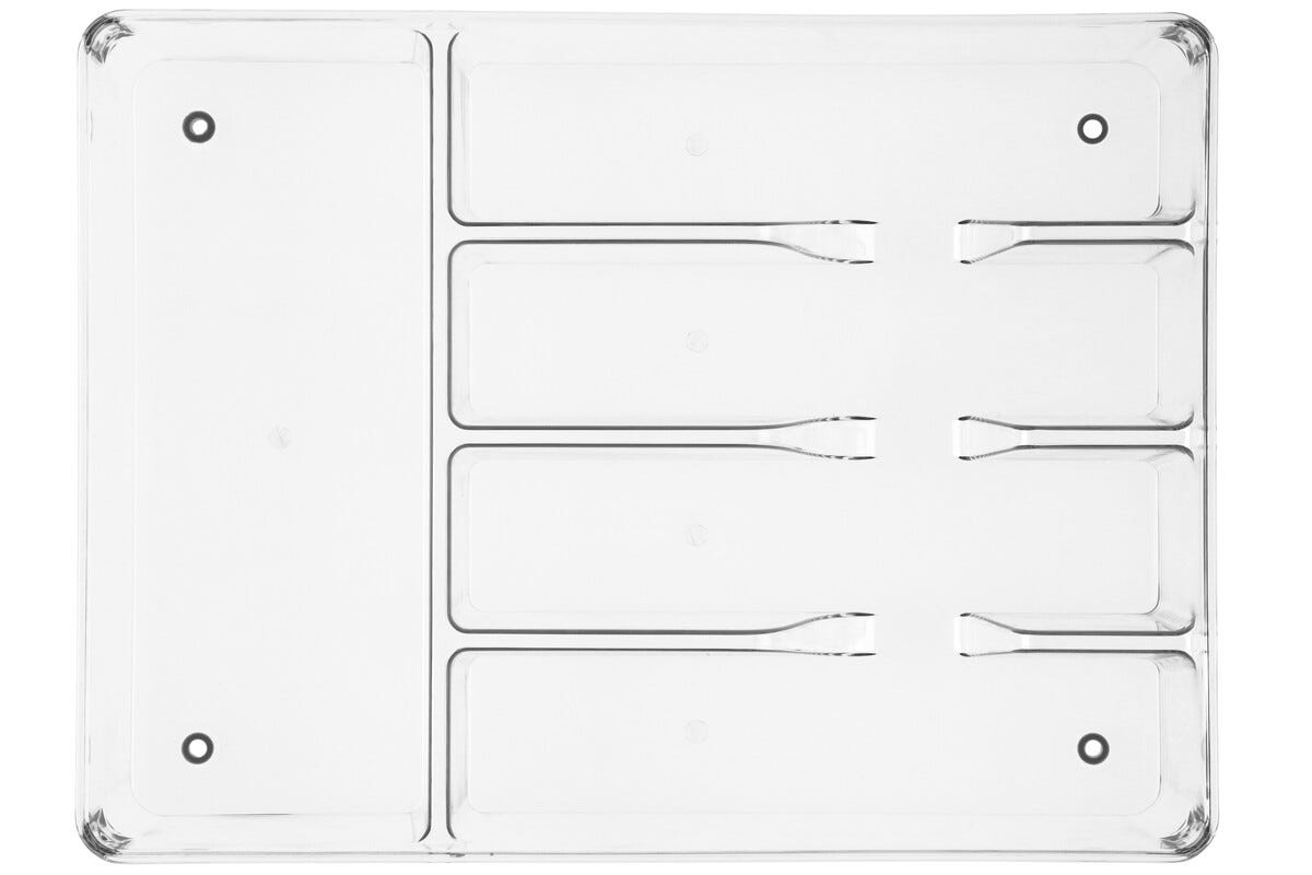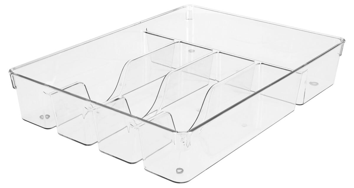 • Bestikkskuff i solid, gjennomsiktig plast – passer inn med innredningen.