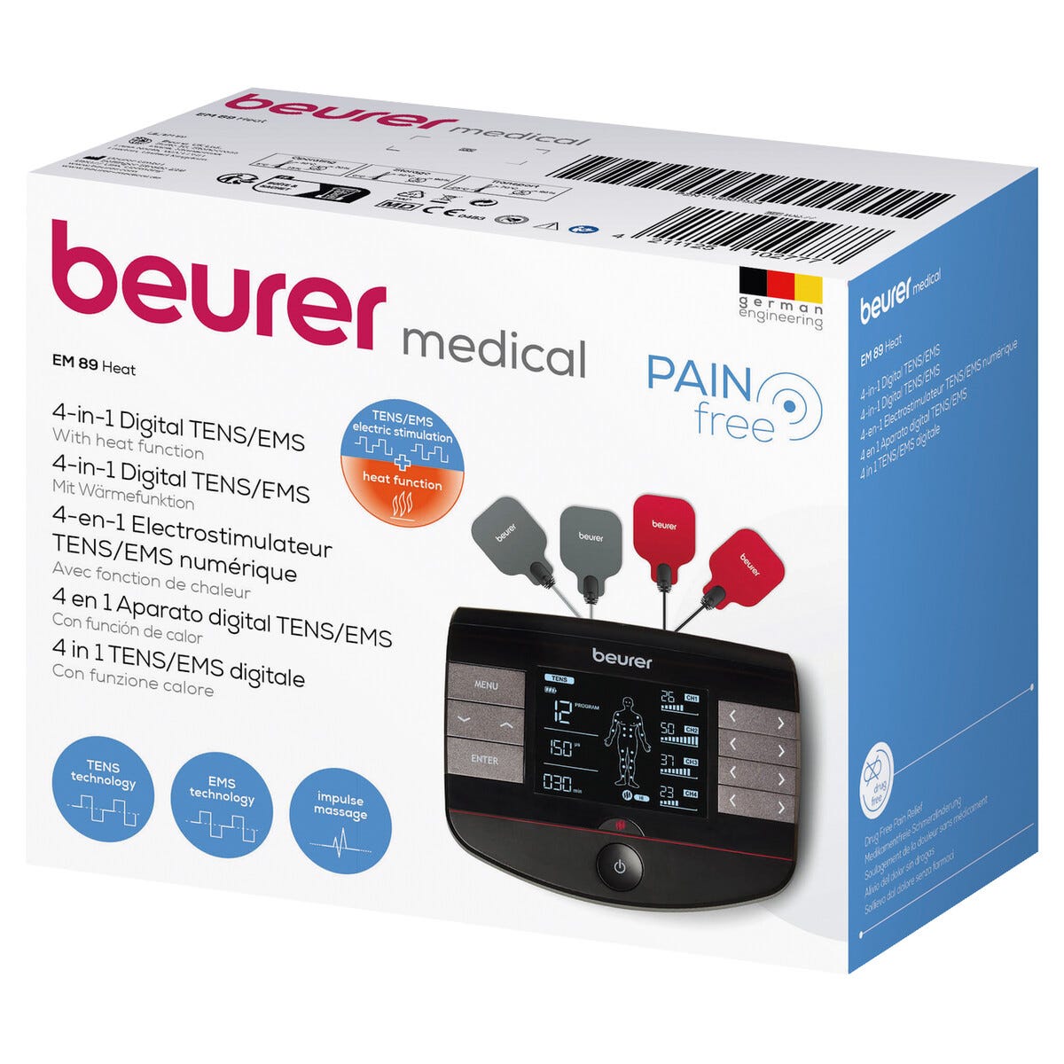 • Beurer EM 89 TENS/EMS-enhet med 4-i-1-funksjon.