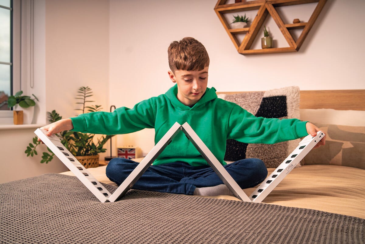 • Bærbart, sammenleggbart piano som bare veier 1,6 kg.