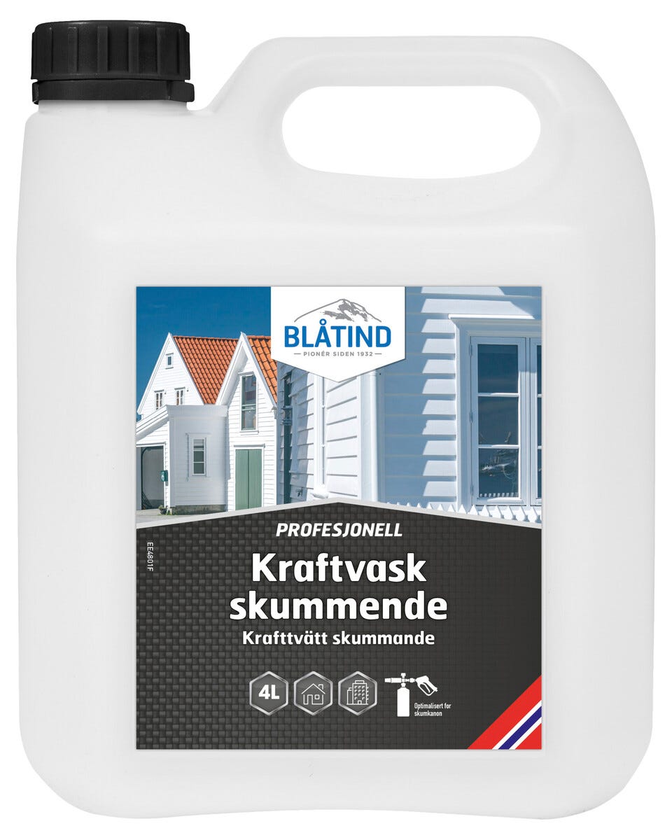 • Blåtind Kraftvask – skummende malingsvask for fasader.