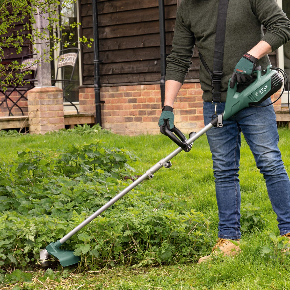 • Robust Bosch gresstrimmer for lang holdbarhet og høy ytelse.