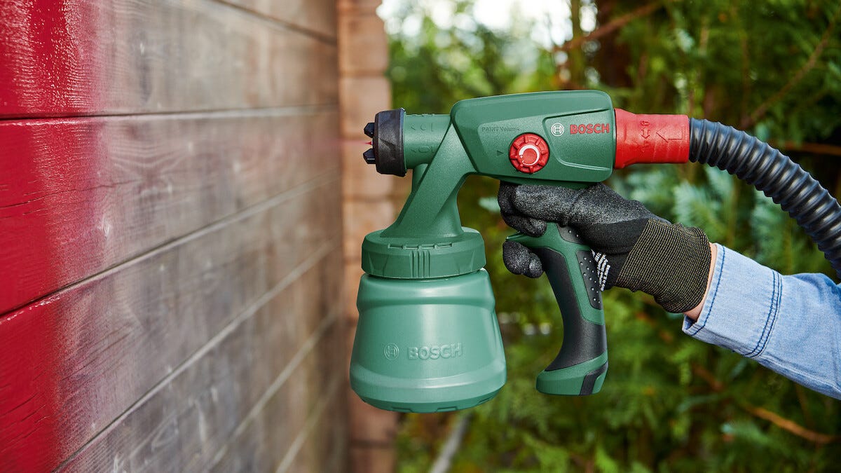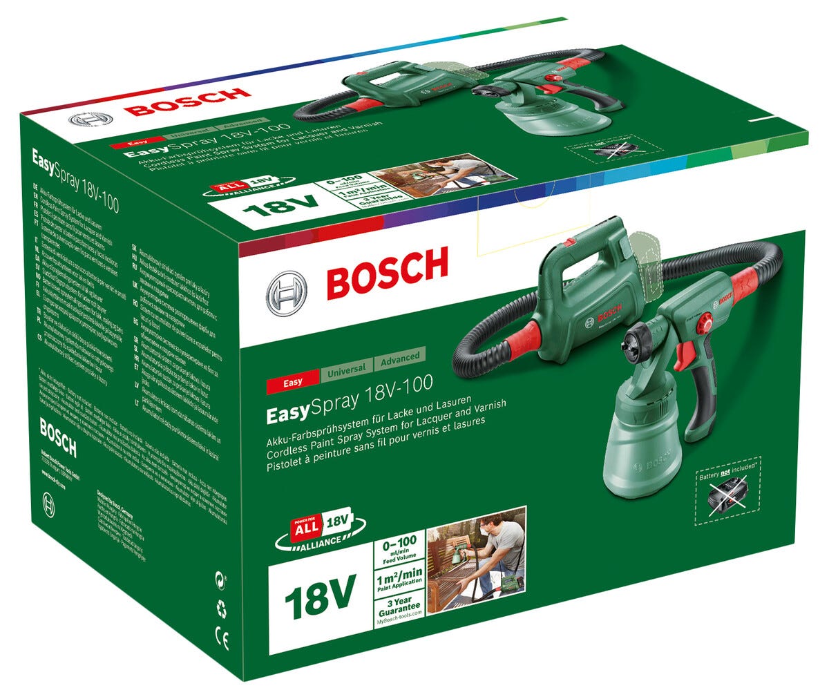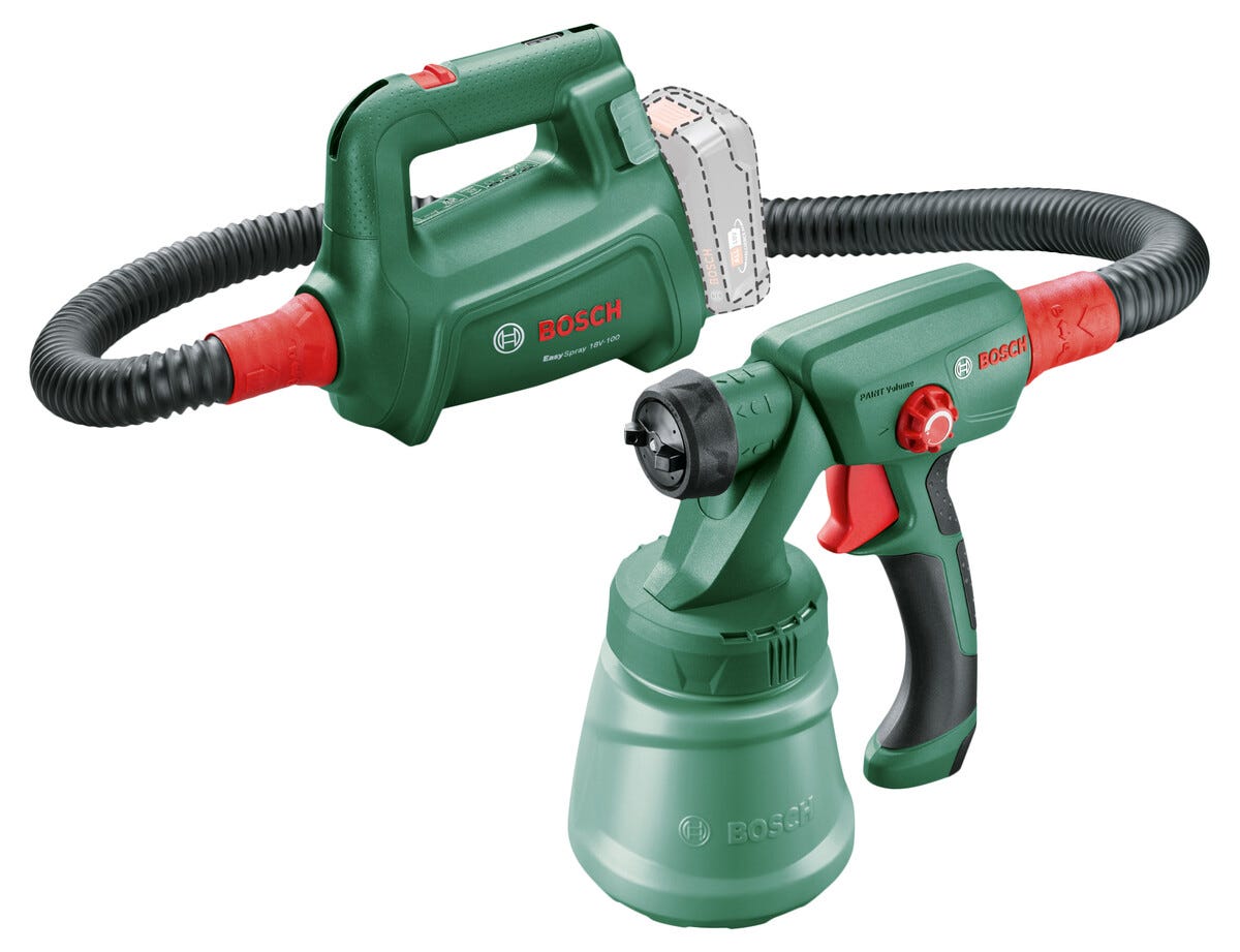 • Bosch EasySpray 18V-100 – malingsprøyte med skulderreim og 1,3 m lang slange.