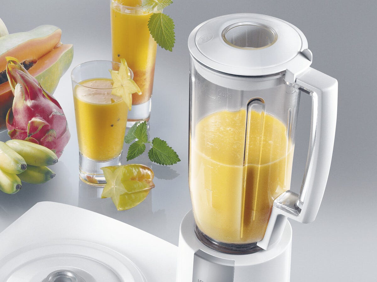 • Med ekstra stor bolle, deigkrok, deigskrape, dobbeltvisp og blender.
