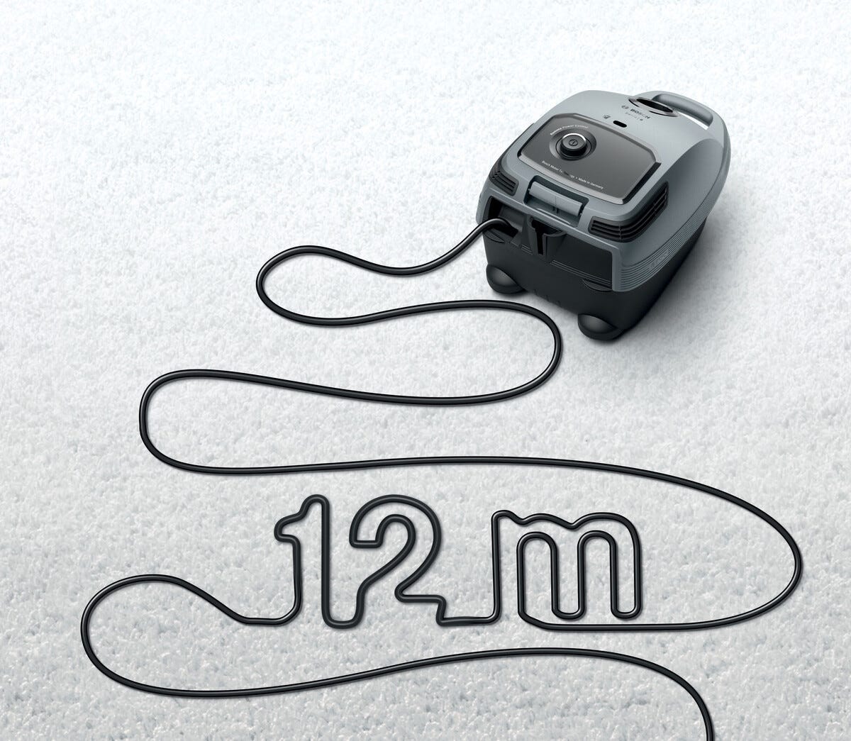 • Ekstra lang rekkevidde på 12 meter gir effektiv rengjøring uten avbrudd.