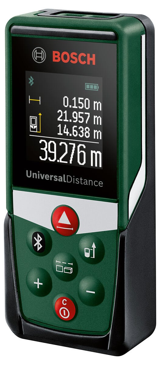 • Bosch Universal Distance 40C – lasermåler med fargeskjerm og svart bakgrunn.