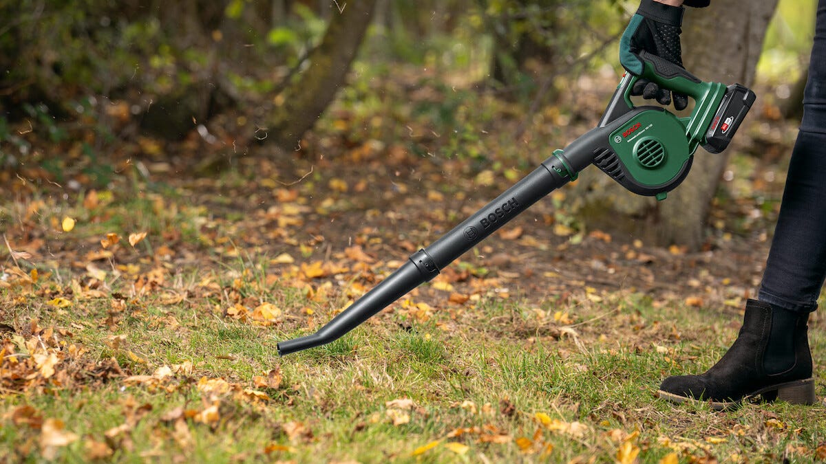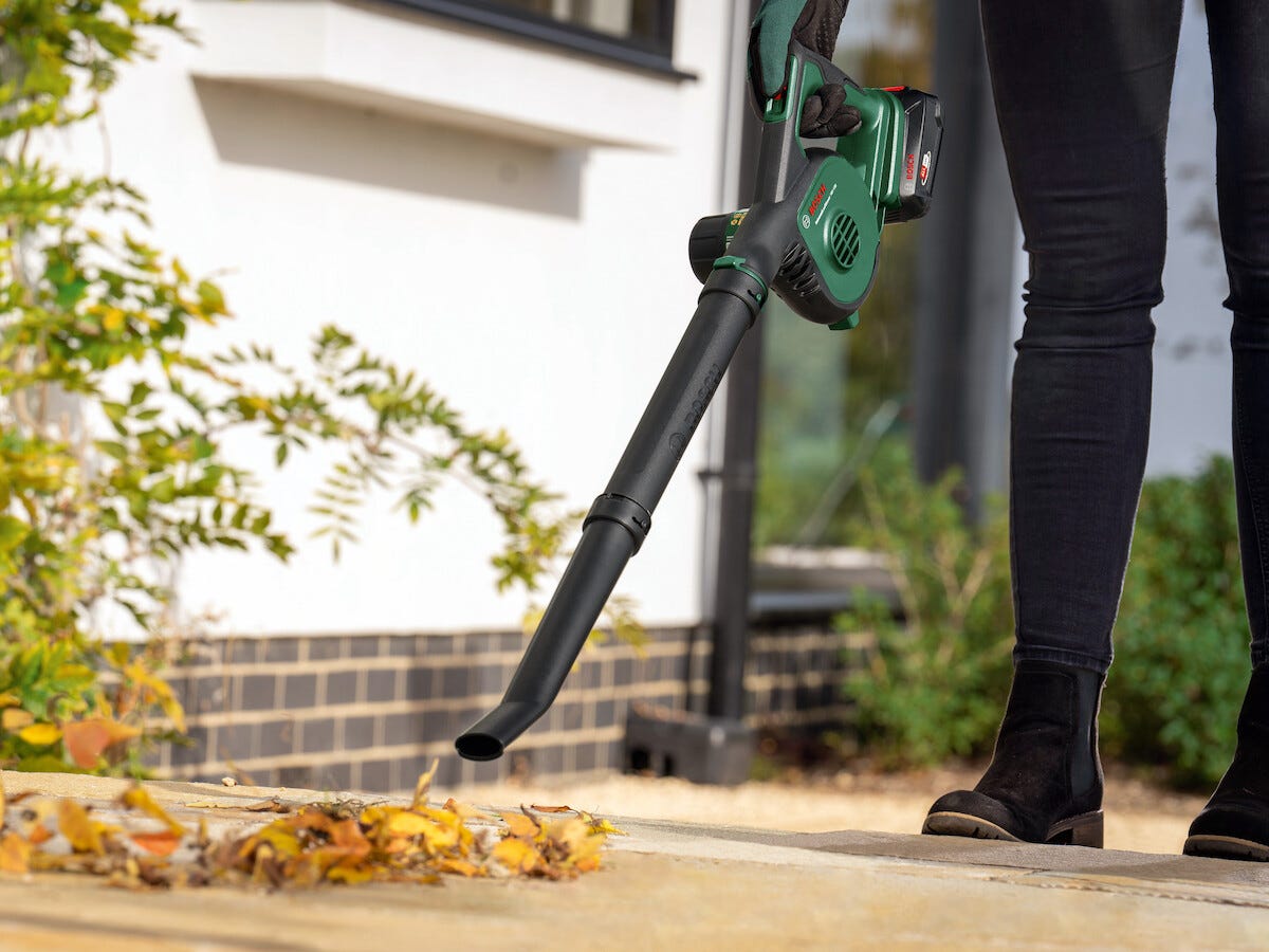 • Bosch LeafBlower 18V-130 – batteridrevet løvblåser med 2 hastigheter.