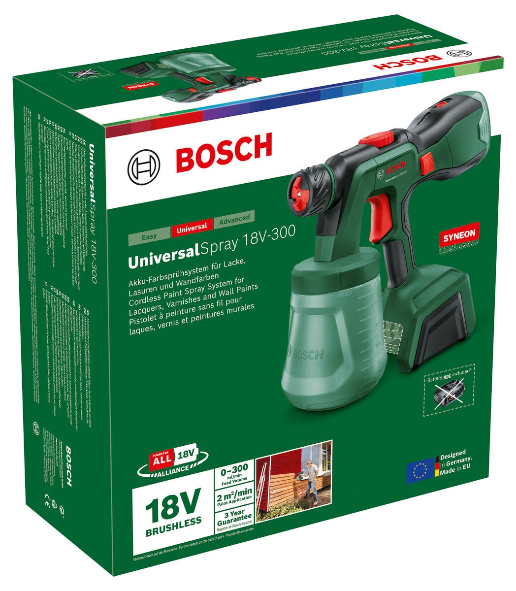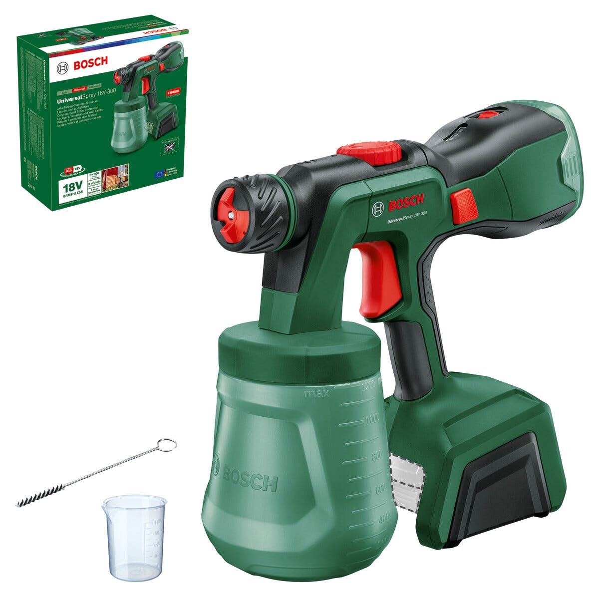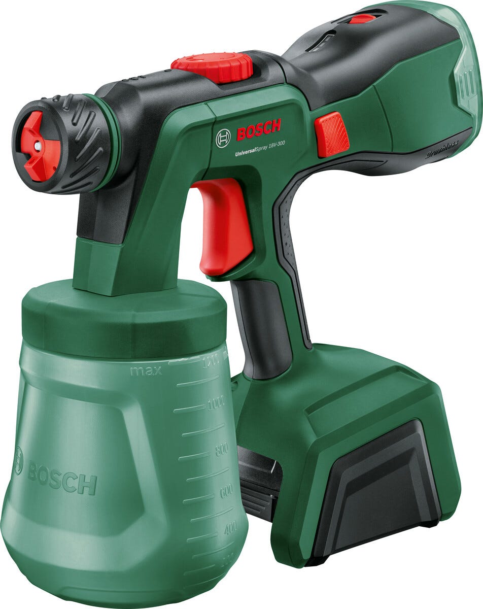 • Bosch UniversalSpray 18V-300 – trådløs malersprøyte med 1,2 l malingsbeholder.