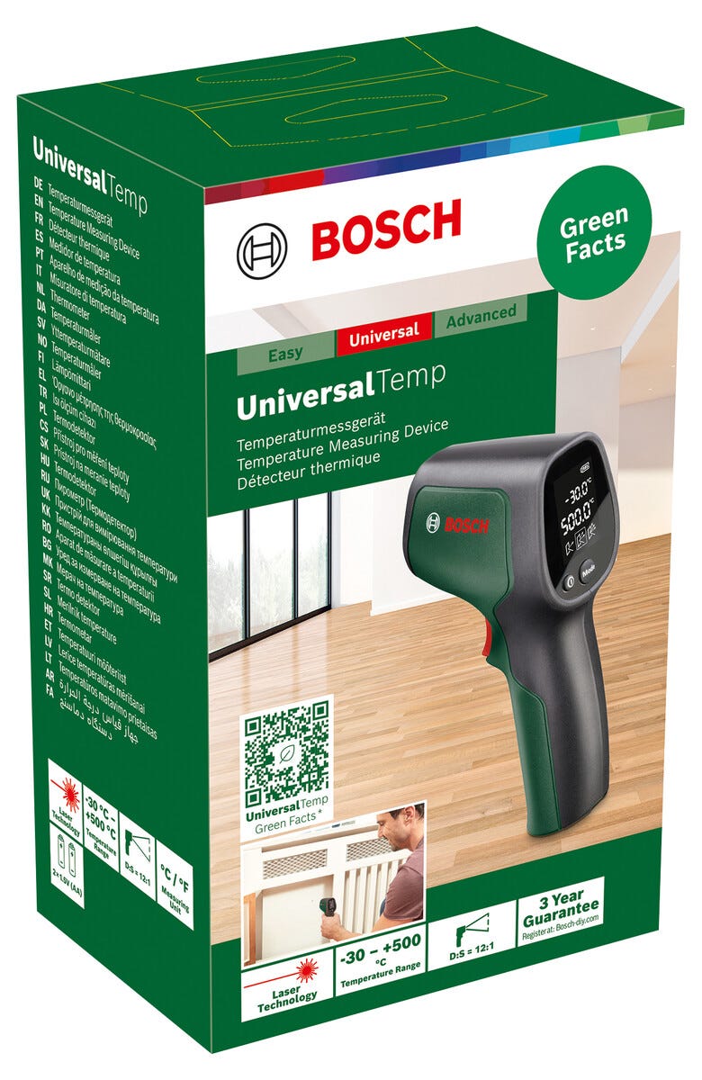 • Bosch Universal Temp – rask IR temperaturmåler av 75 % återvunnen plast.