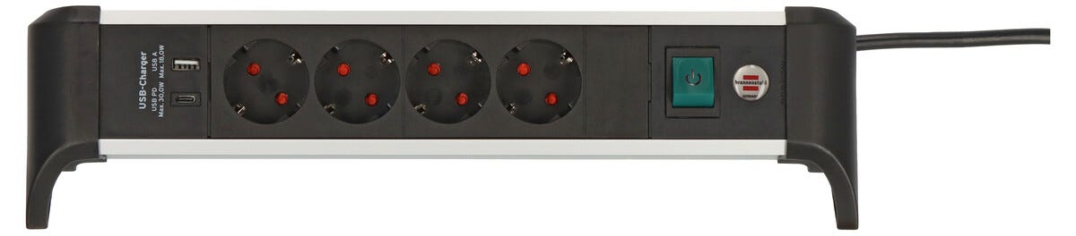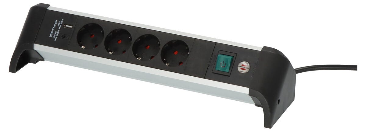 Brennenstuhl 4-veis grenuttak med USB-A og USB-C, 1,8 m