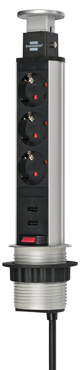 Brennenstuhl Tower Power PopUp 3-veis grenuttak, 2 USB