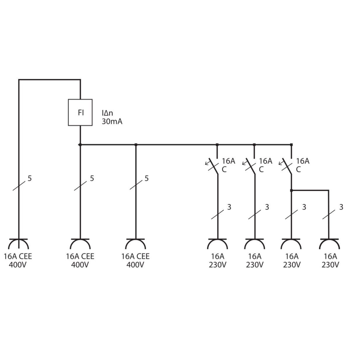 • Midlertidig strømsentral med jordfeilbryter (30 mA) – sikker strømforsyning.