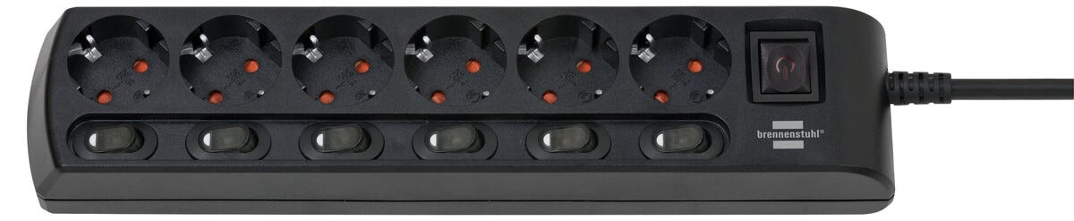 Brennenstuhl grenuttak med strømbryter 6-veis, svart