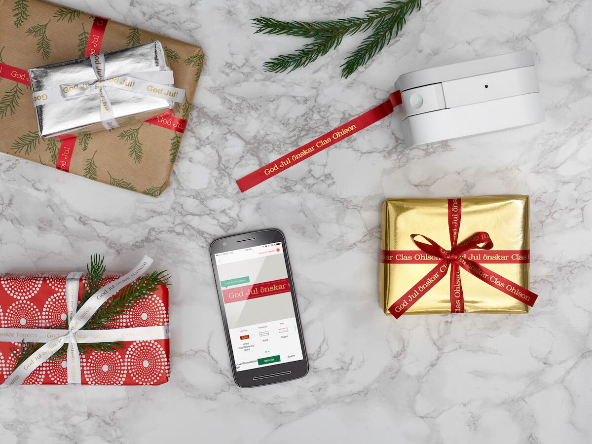 • Liten merkmaskin som skriver ut forskjellige typer etiketter.
