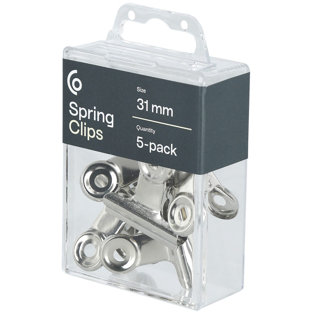 Bulldog-klemmer 31 mm sølv, 5-pakning