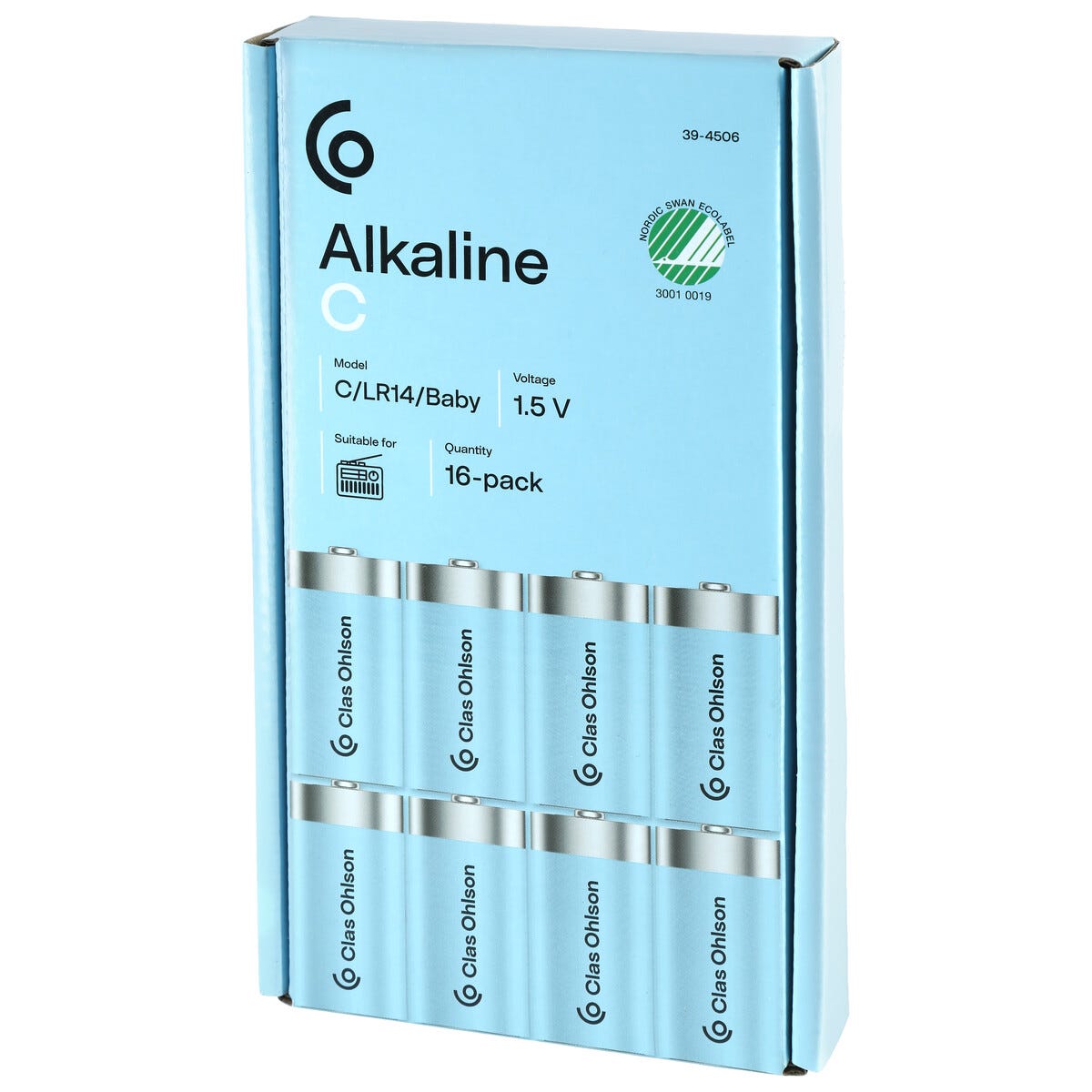 C-batterier, alkaliske, 16-pakning