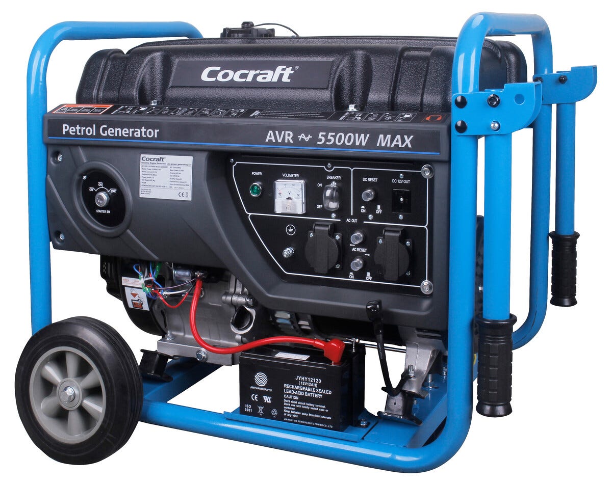Cocraft HG5500S bensindrevet strømaggregat, elstart og trekkstart