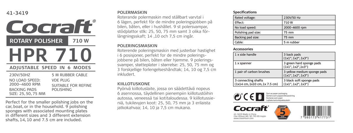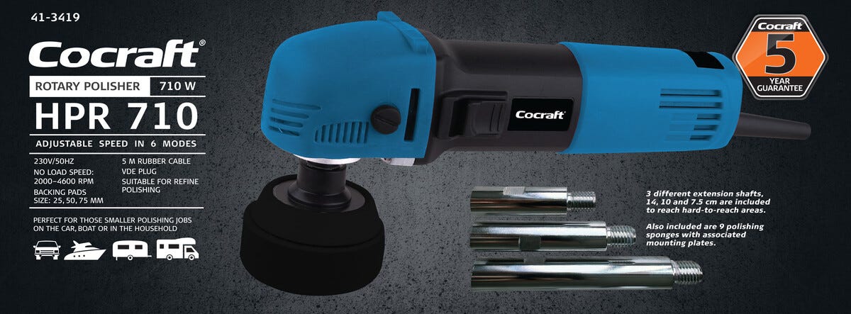 • Cocraft HPR 710 – poleringsmaskin til mindre jobber på bil, båt og i hjemmet.