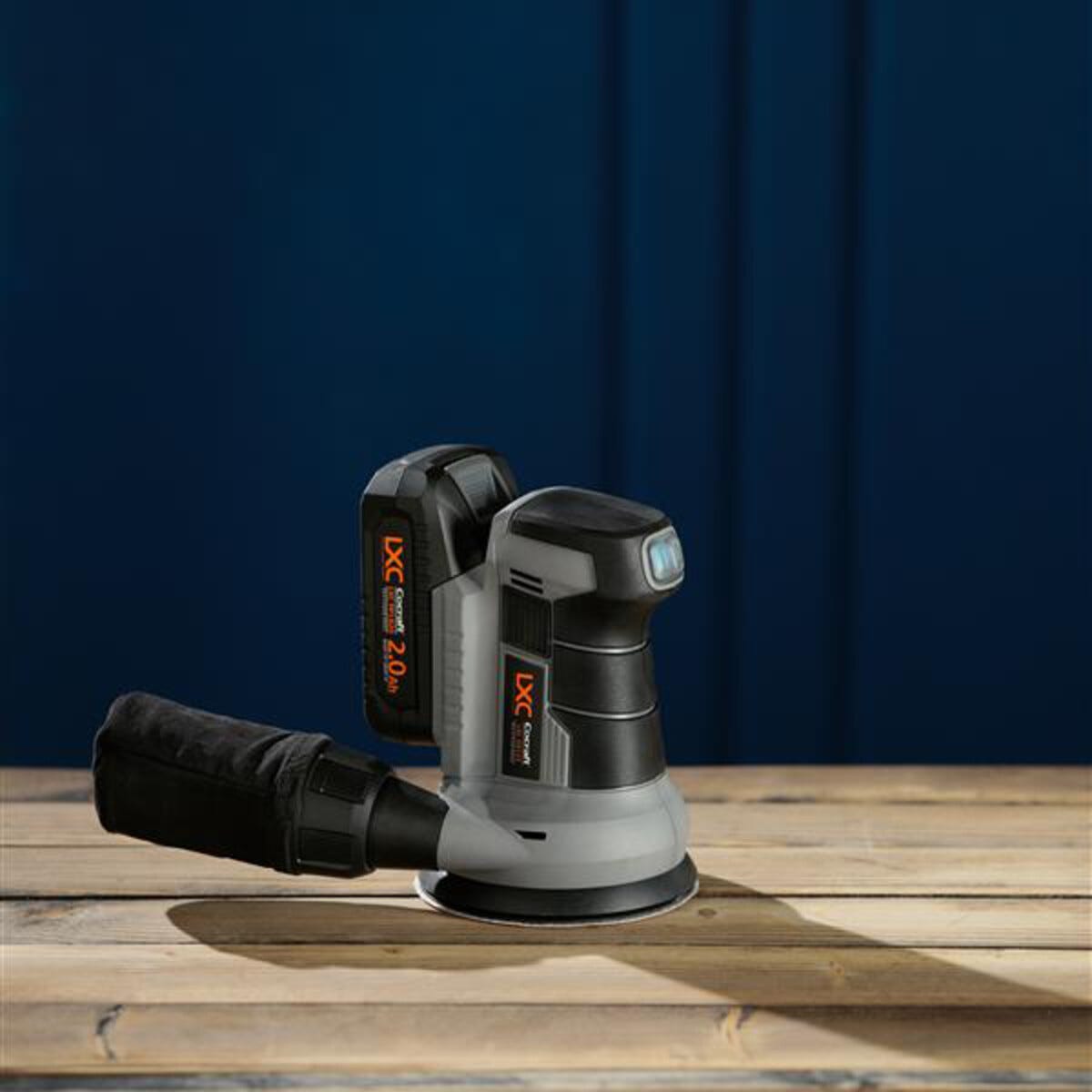 • Cocraft LXC OS125 batteridrevet slipemaskin med 125 mm slipeplate.