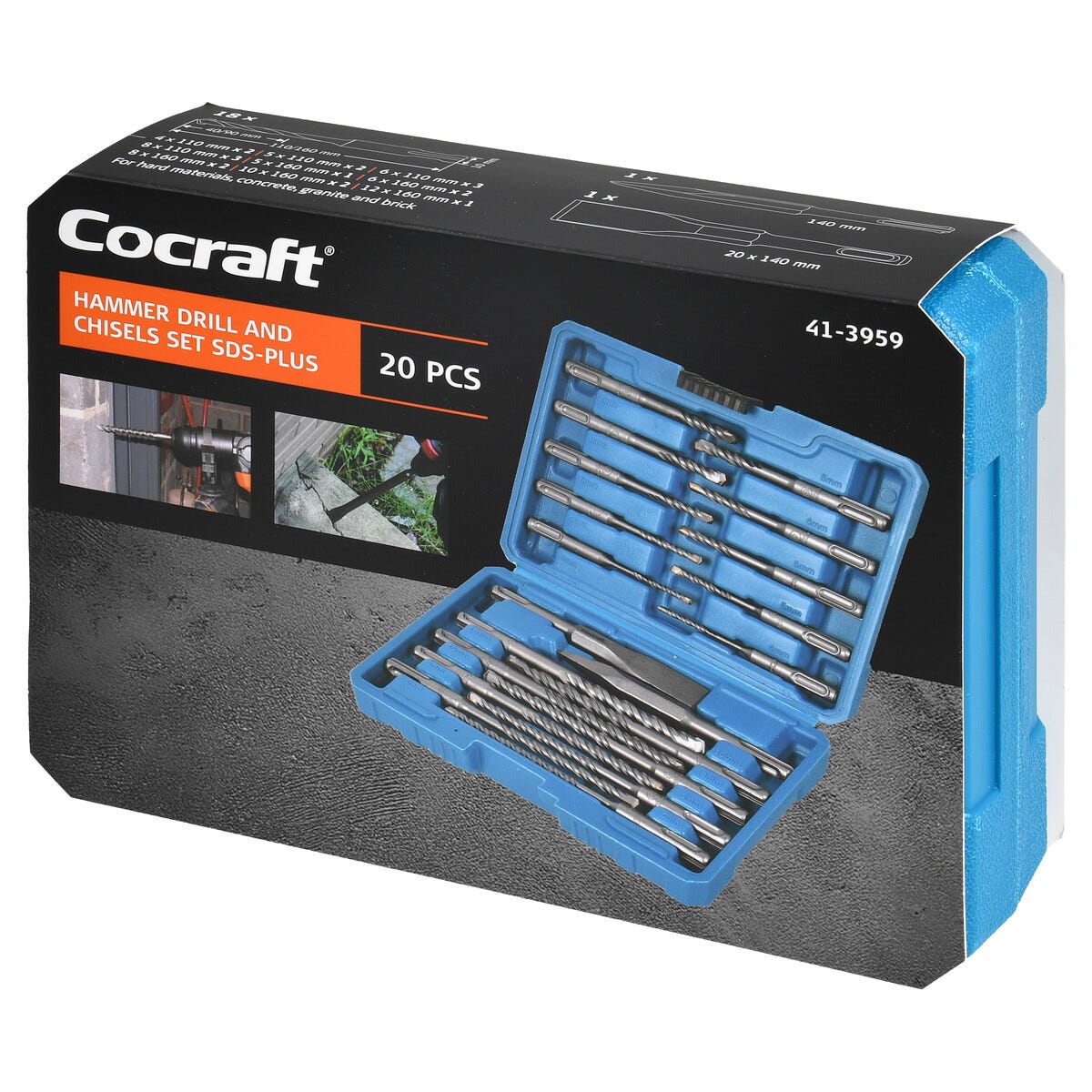 Cocraft hammer- og meiselsett SDS-plus, 20 deler