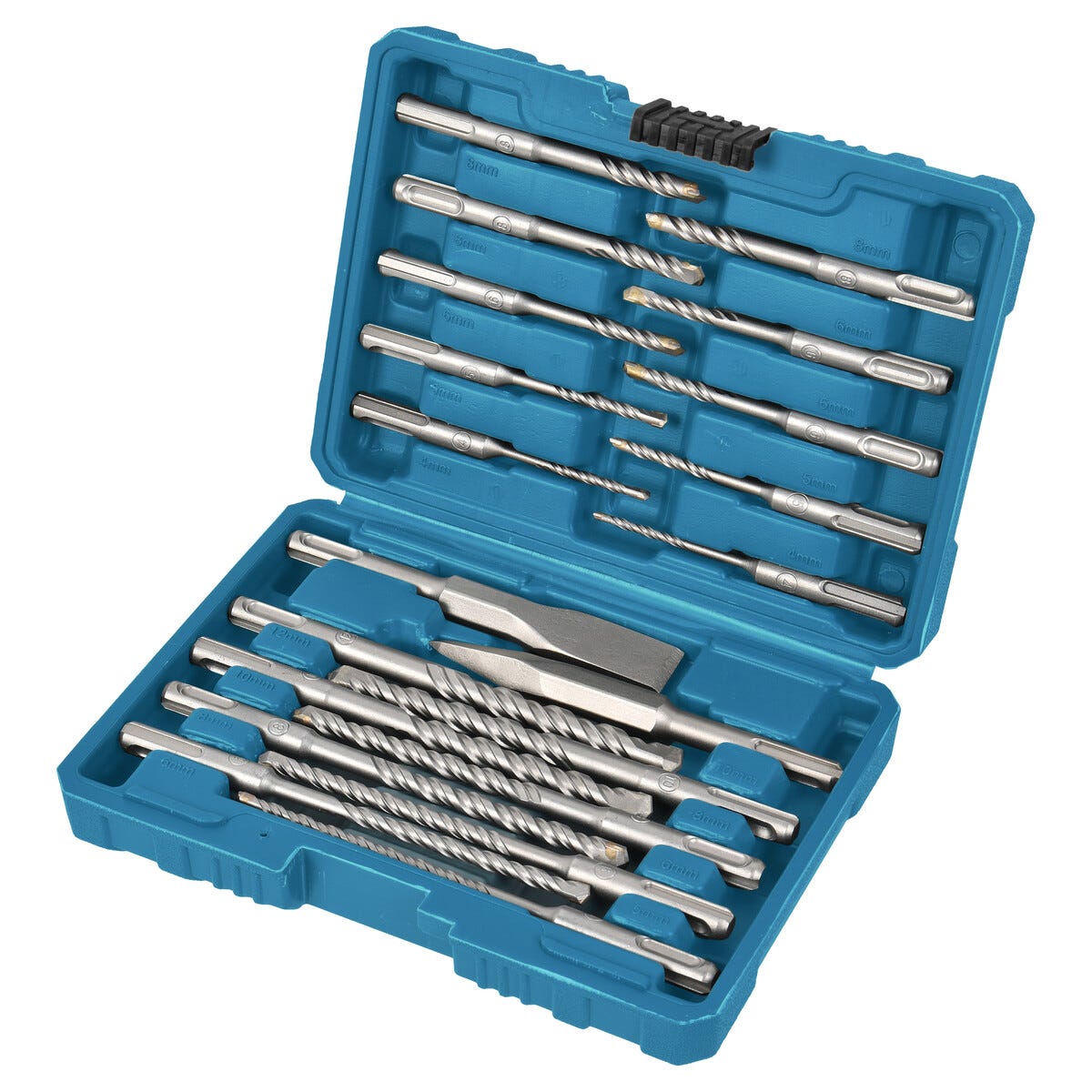 • 20 deler – 18 bor 4–12 mm (110/160 mm) samt spiss- og flatmeisel.