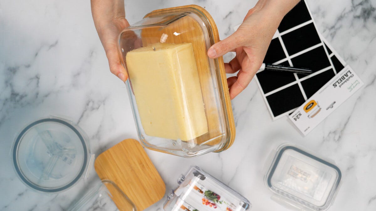 • Matboks i glass for matoppbevaring i kjøleskap og kjøkkenskap.