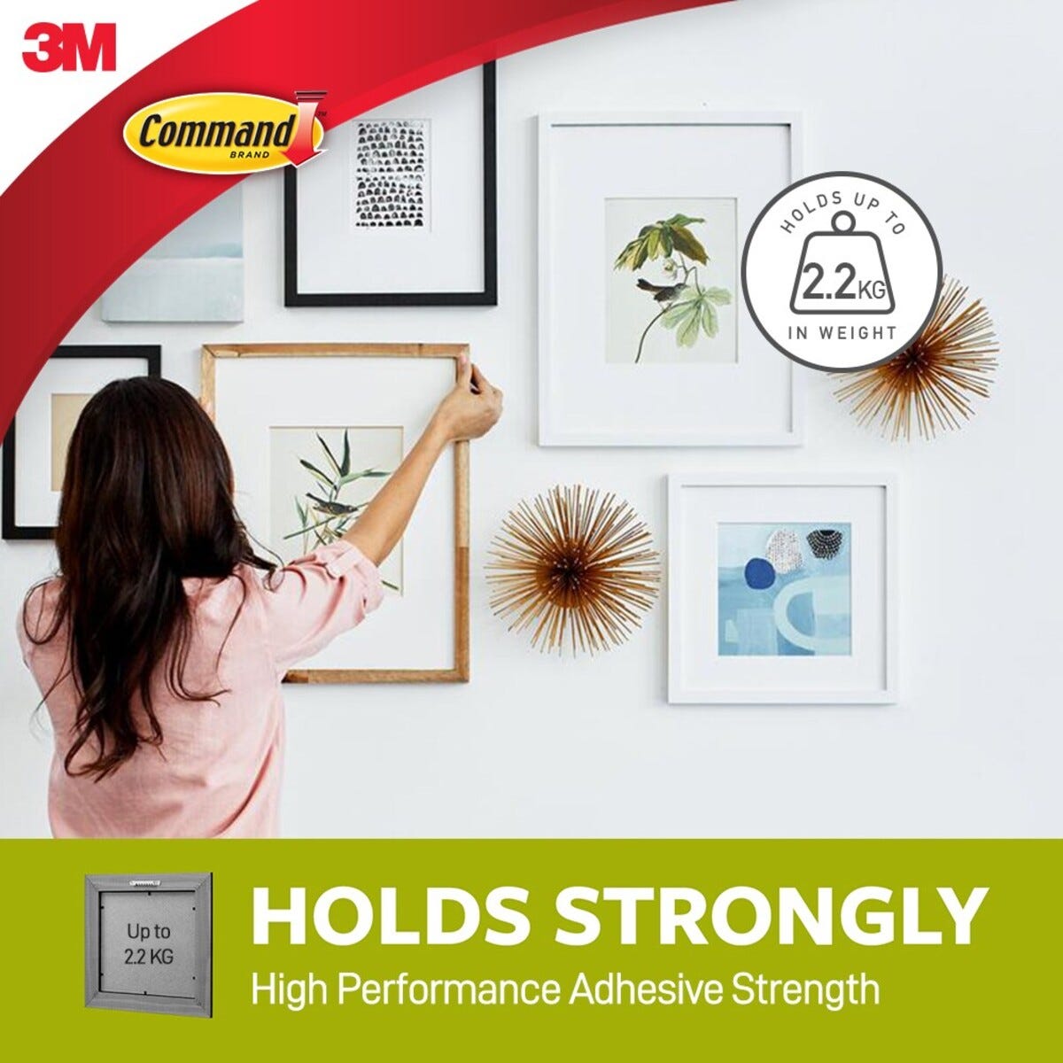 • Command Sticky Nail bildekrok – sitter godt uten å skade underlaget.
