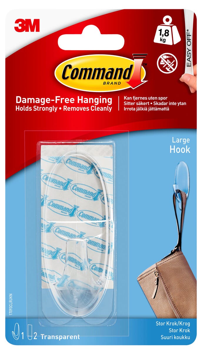 • Command stor gjennomsiktig krok – sitter godt uten å skade underlaget.