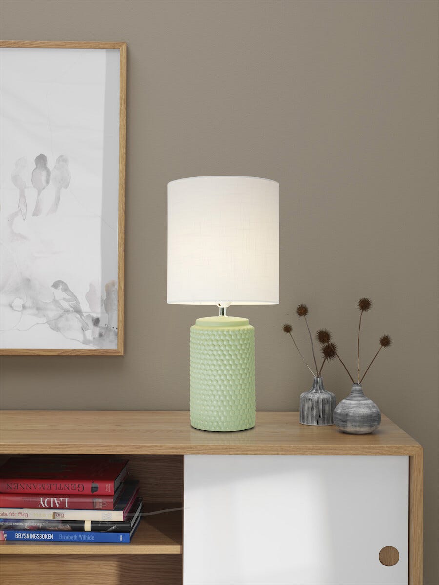 • Cottex Bubbel XL boblelampe – bordlampe av keramikk med tekstilskjerm.