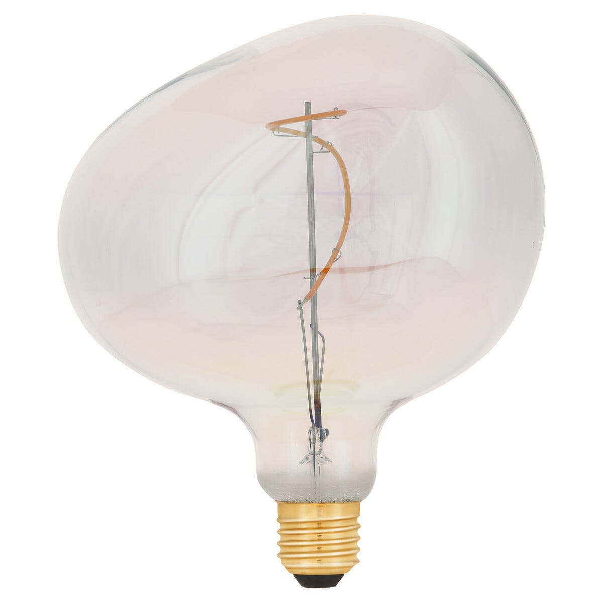 • Farget glassdesign med regnbueeffekt og vakkert filament – for lamper uten skjerm.