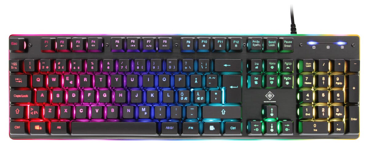 • Gaming-tastatur med innebygd LED-belysning (RGB) og 12 forskjellige innstillinger.