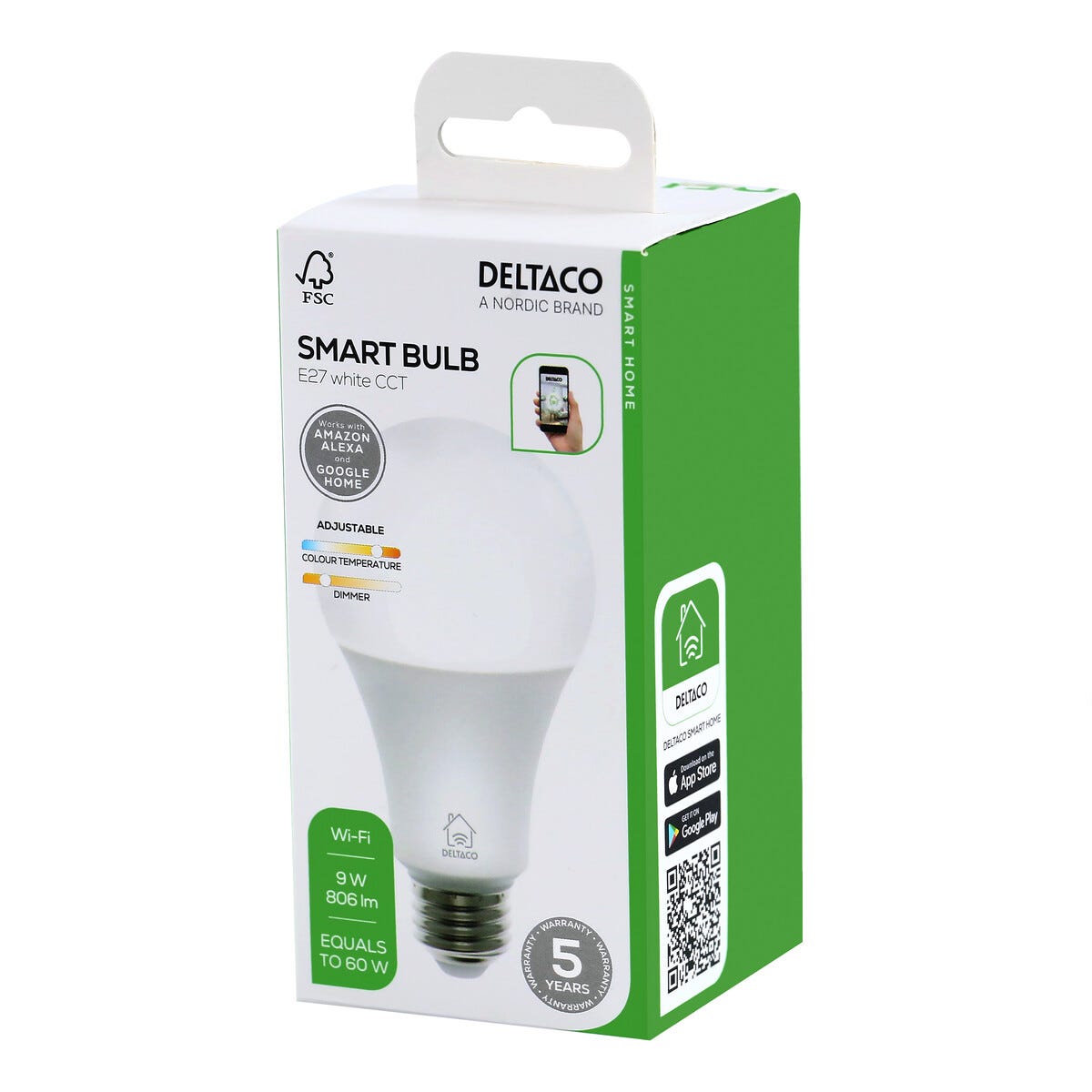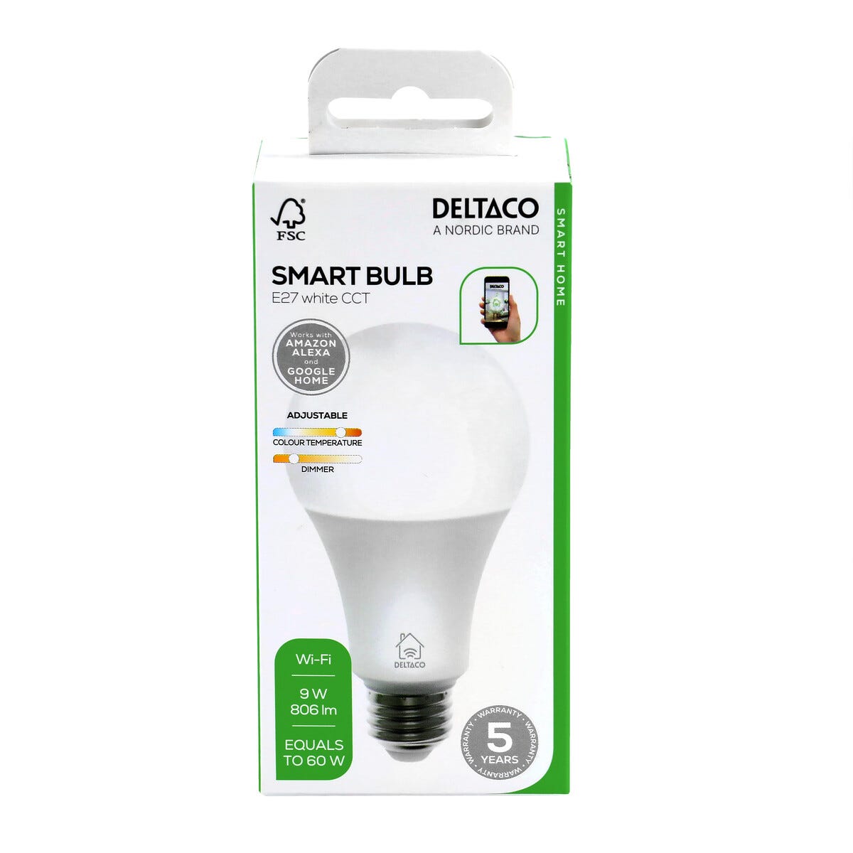 Deltaco Smart LED-pære E27 9 W dimbar, SH-CHLE27A60
