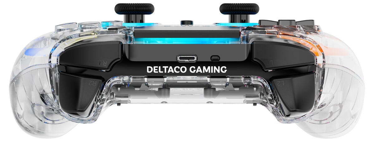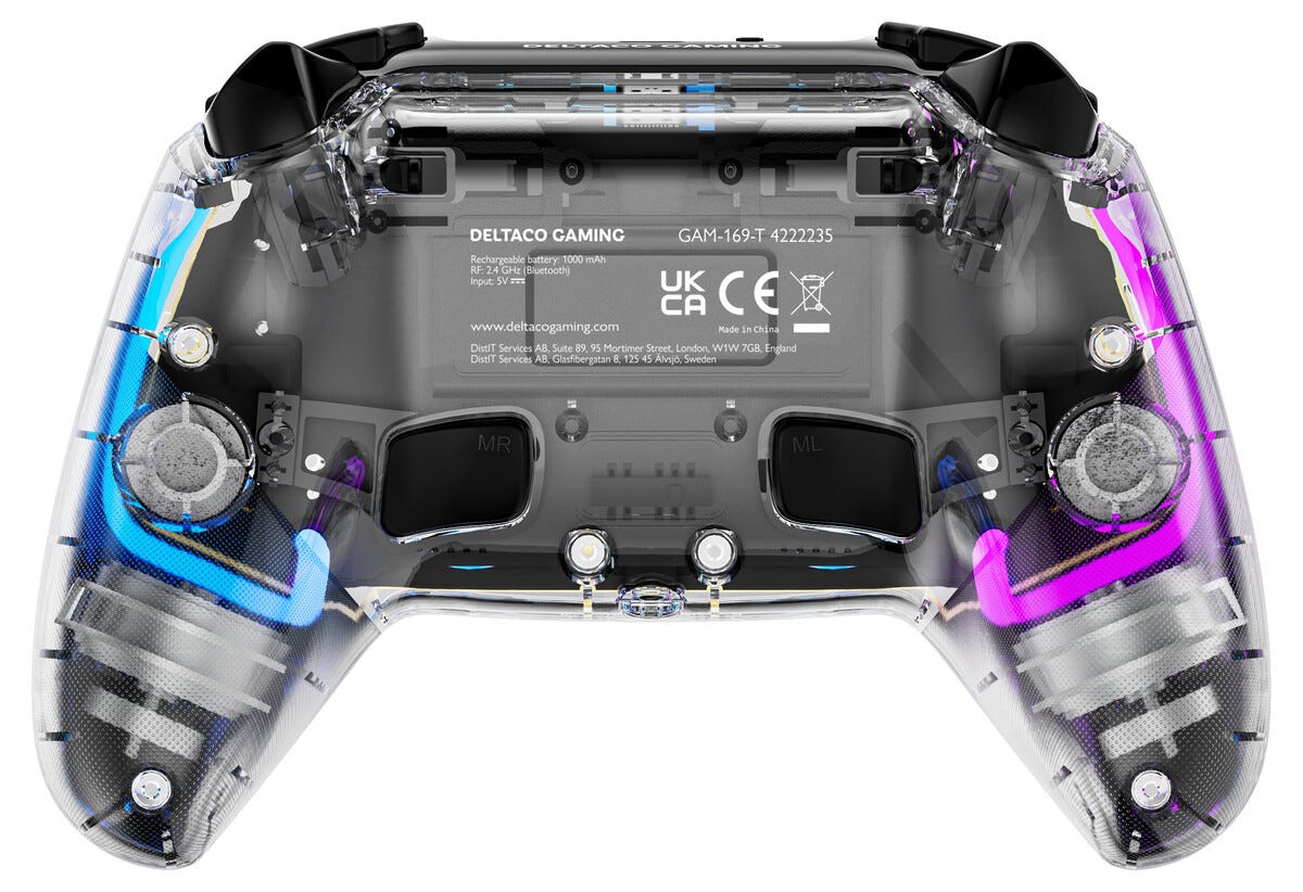 • Deltaco gjennomsiktig PS4- og PC-kontroll – med justerbare vibrasjoner.