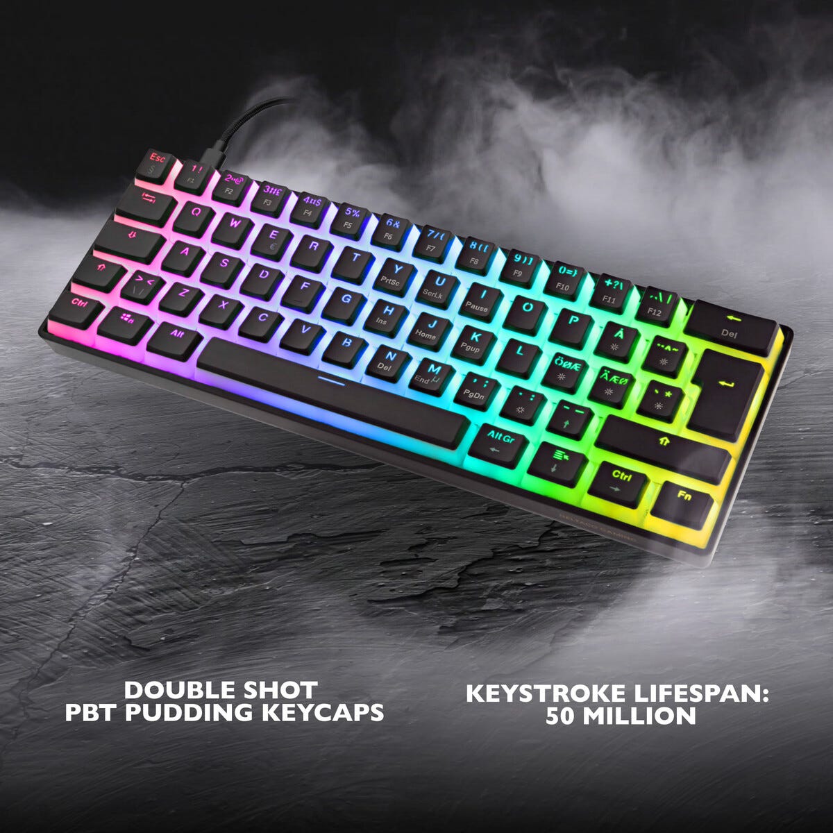 • Minitastatur med belysning, Hot-Swap-brytere og 62 taster.