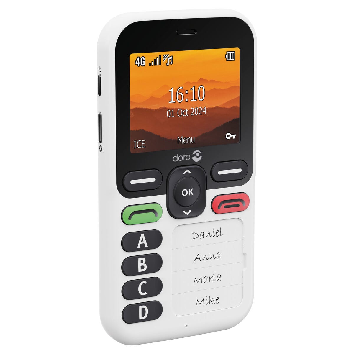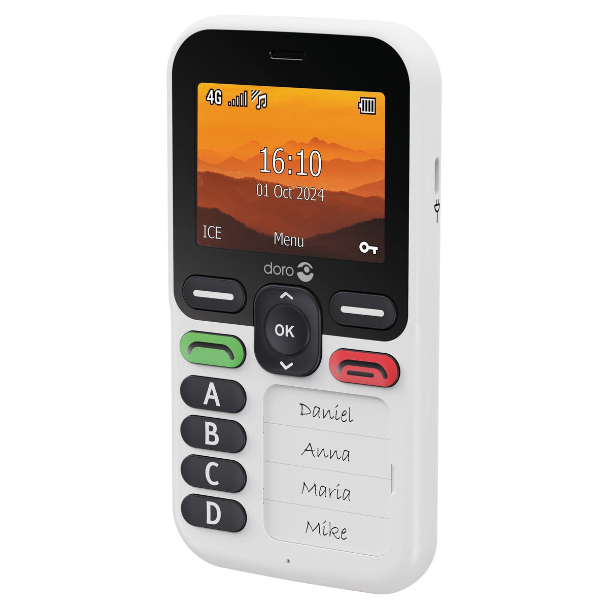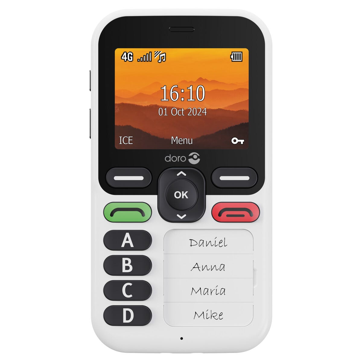 • Brukervennlig seniortelefon med 4 tydelige hurtigvalgtaster.