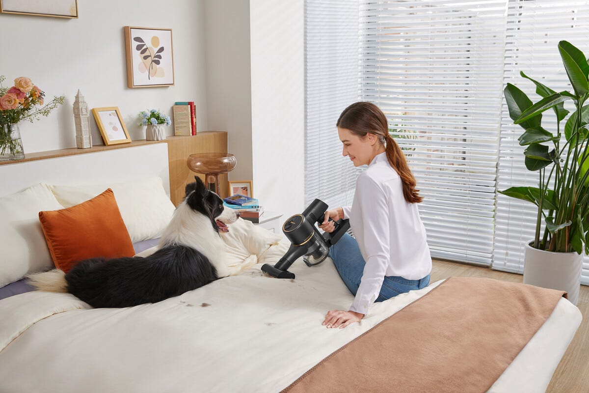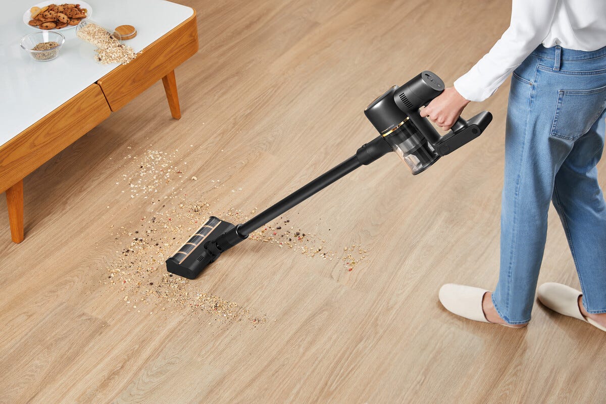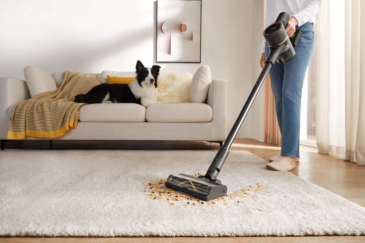 • Dreame R10 Pro skaftstøvsuger – rengjør både tepper og harde gulv.