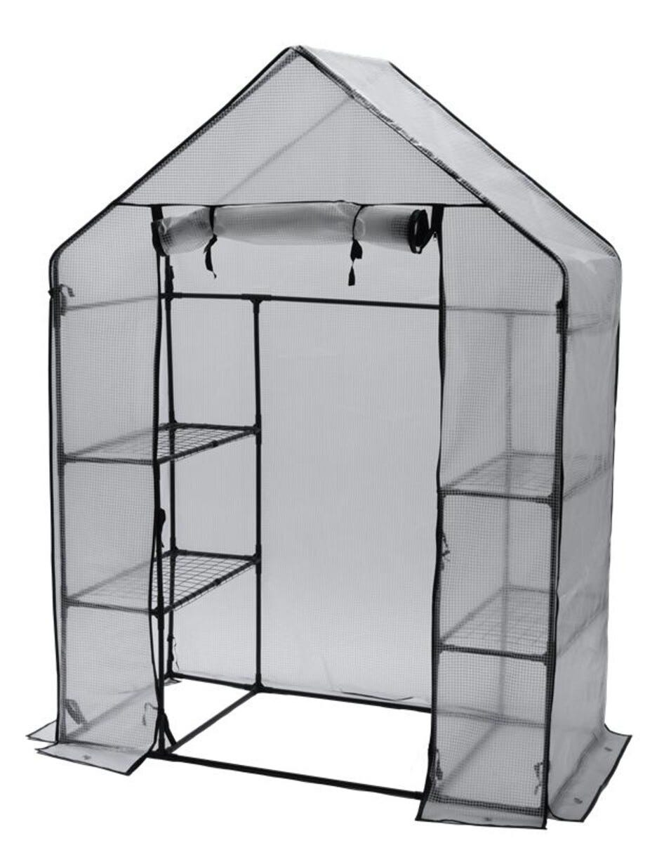 • Lite og stabilt drivhus med 4 hyller i svartlakkert stålnetting.